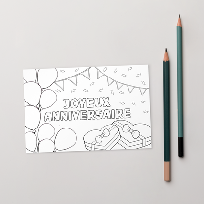 Avec ses motifs originaux et faciles à colorier, cette carte devient un vrai terrain de jeu artistique. Crayons, feutres ou pastels, tout est permis pour transformer cette carte en un chef-d’œuvre unique et plein de couleurs !